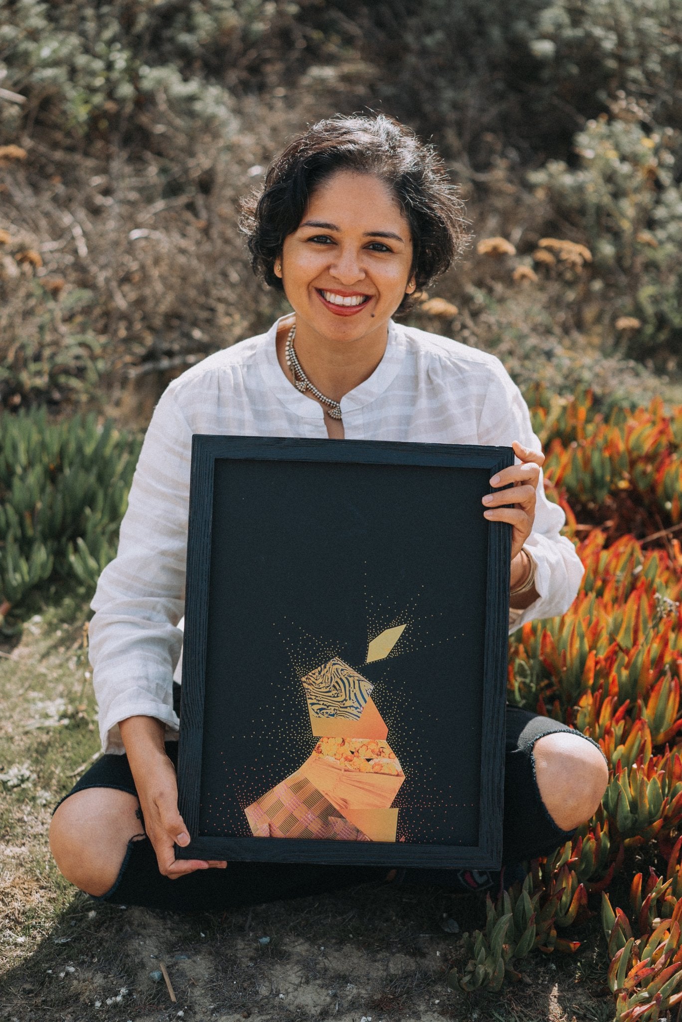 My abstract collages, playful and at times calming, are my way of sharing the beauty in simple things around us like the sky or a stone or a leaf that often go unnoticed.